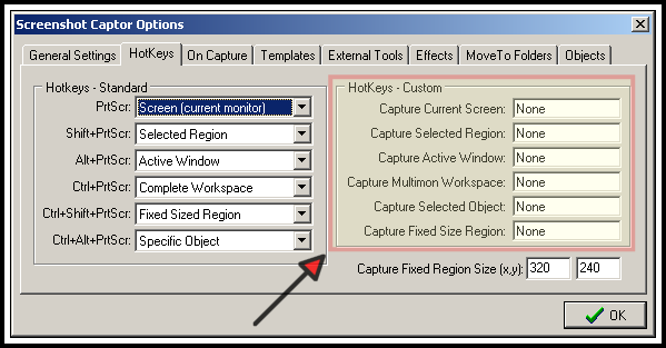 in the right "Custom Hotkey" area