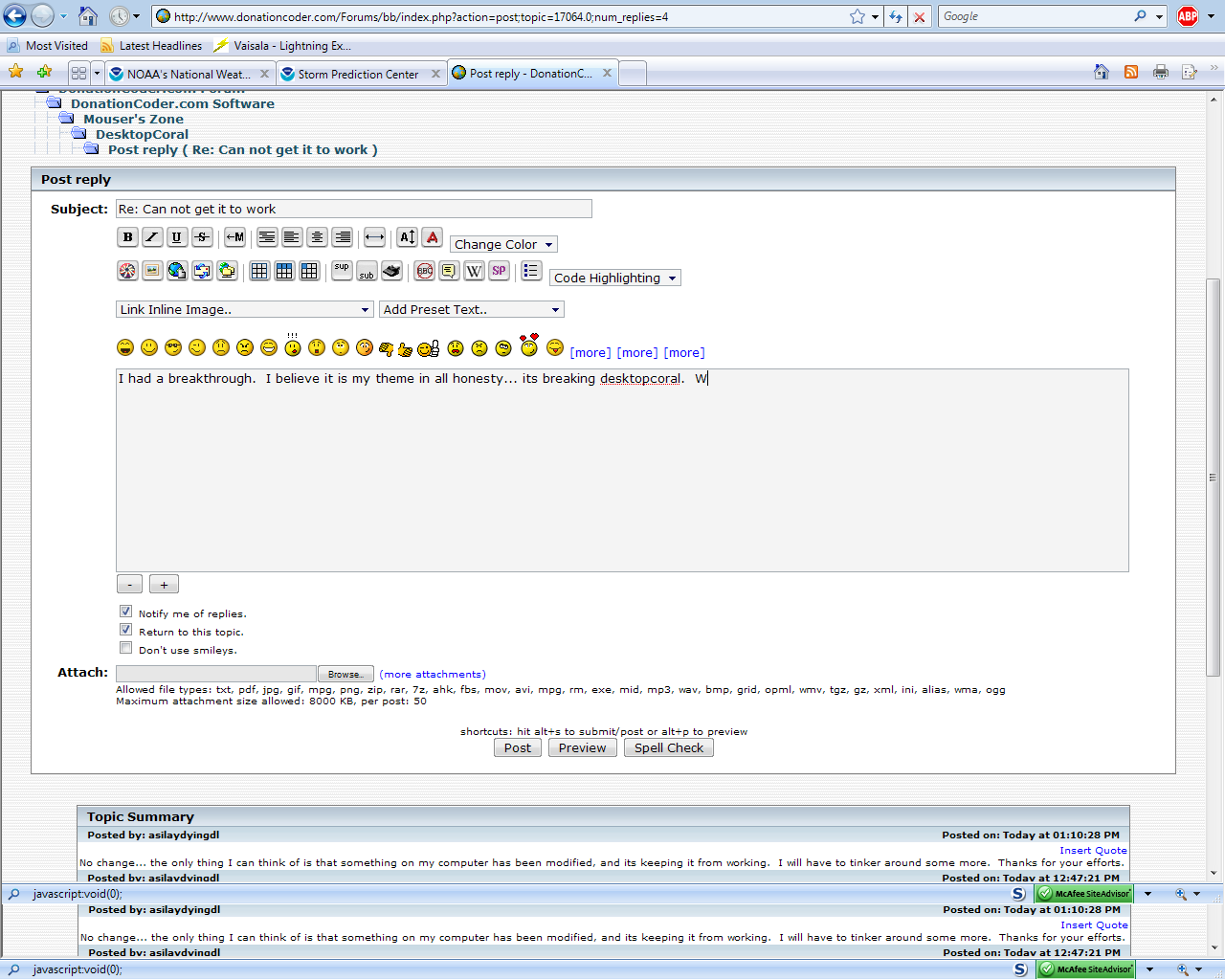 I have a theory regarding this program... I think that maybe any themes which make your windows taskbar larger than default break this software. The first time it was working, I had a standard sized taskbar with my theme, however, since I changed to themes with larger taskbars (Window Vista theme, Windows Seven theme) it has not worked. can you please check this one out Mouser and see if its the case? If so, can you address it in future releases? I will test this theory myself soon. Thanks!