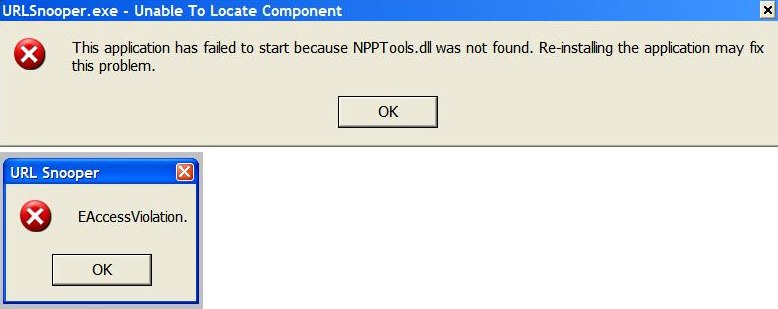 I only get the "URL Snooper EAccesViolation" message - not both!(I copied that picture from the forum & wasn`t able to split it